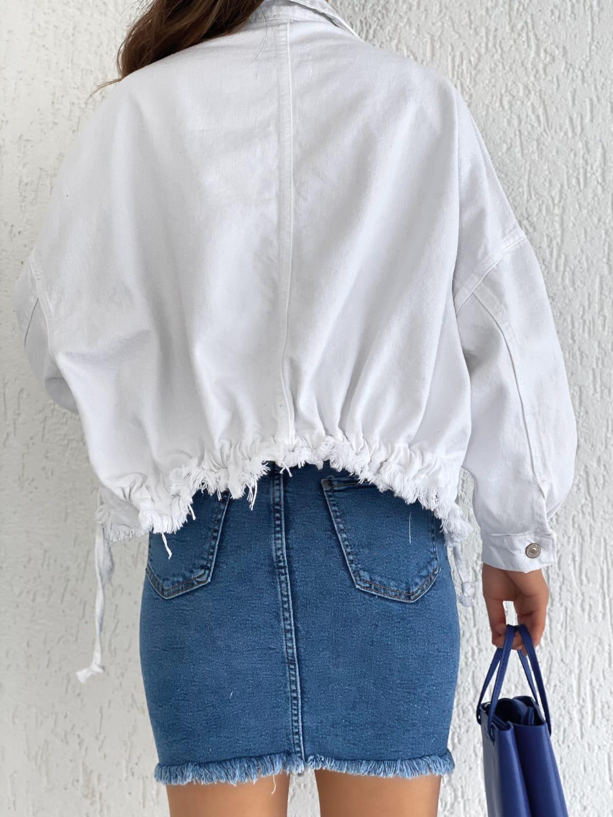 Ruched Back Drawstring Denim Jacket